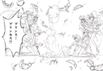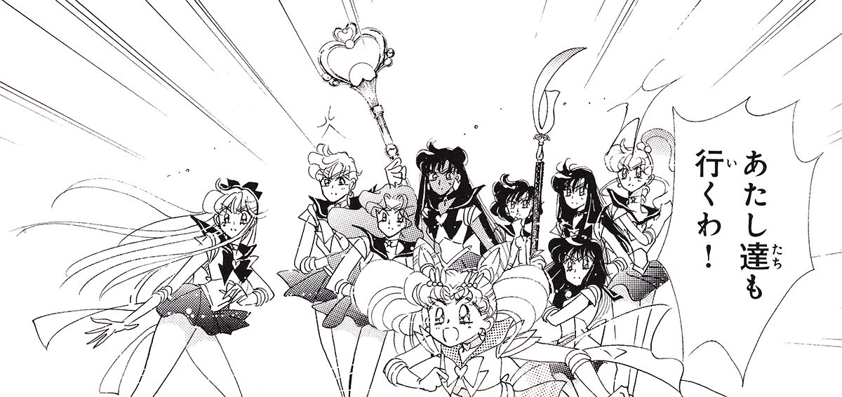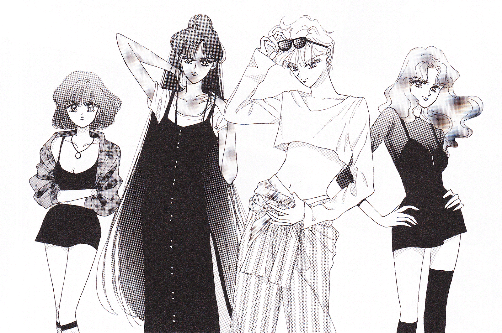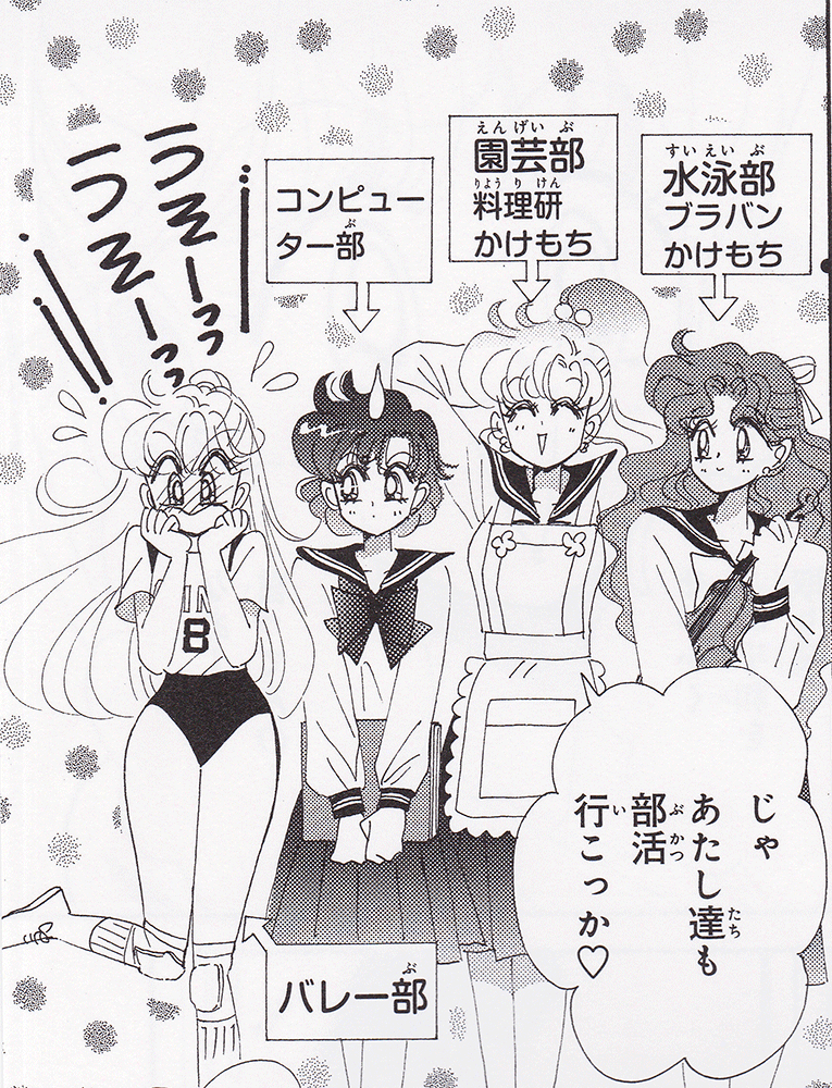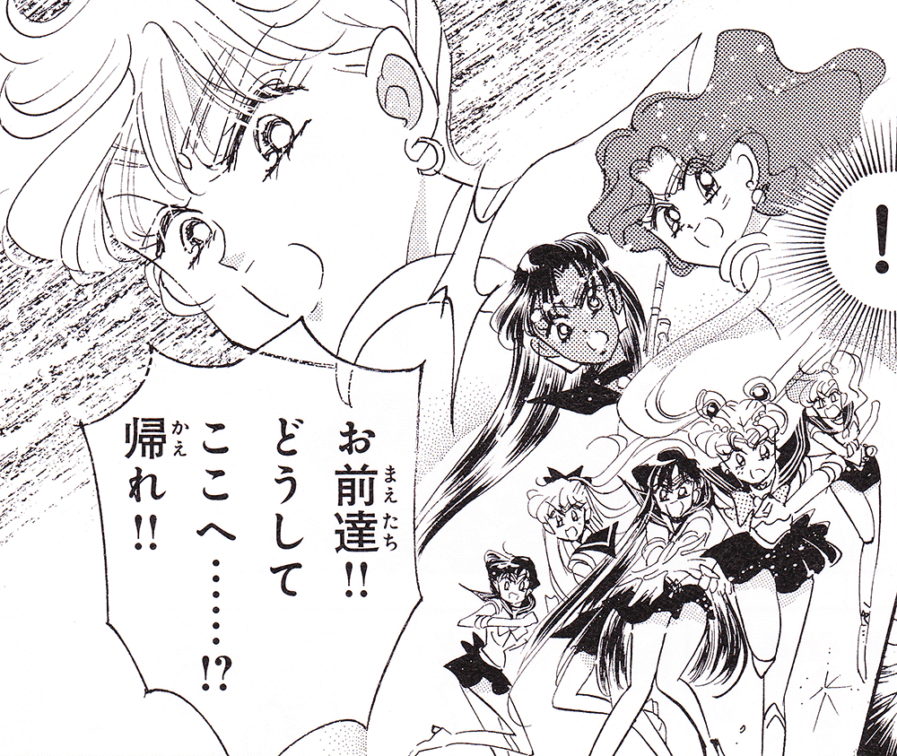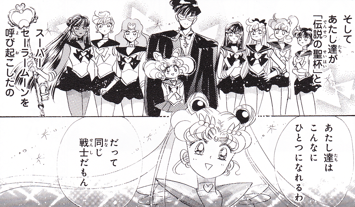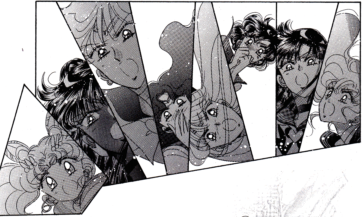 Black & white manga images of Haruka, Michiru & others.