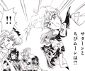This gallery features black and white manga scans of Haruka and Michiru with other characters, from the third edition of the